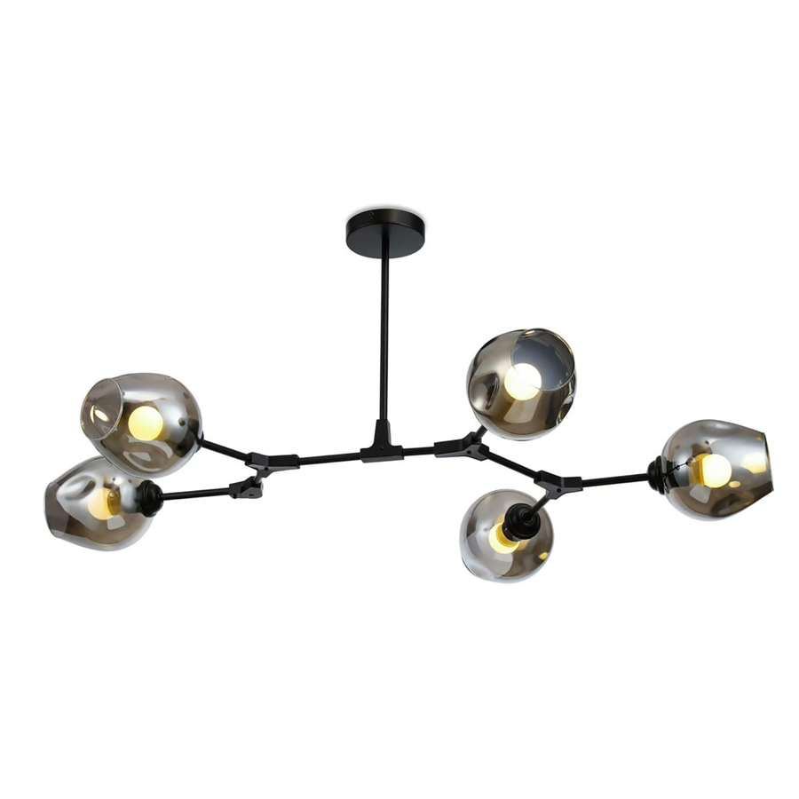 Adams is a stylish ceiling lamp that provides even and pleasant lighting to the environment. Its smoked glass domes combine perfectly with the black metal frame. The lamp has five E27 sockets, which can accommodate bulbs up to 40W. The Adams ceiling lamp is suitable for many interior styles and different spaces. The width of the lamp is 105 cm and the height is 45 cm. The lamp is installed directly in the ceiling box and the connection is made with a sugar cube. The product’s protection rating is IP20.