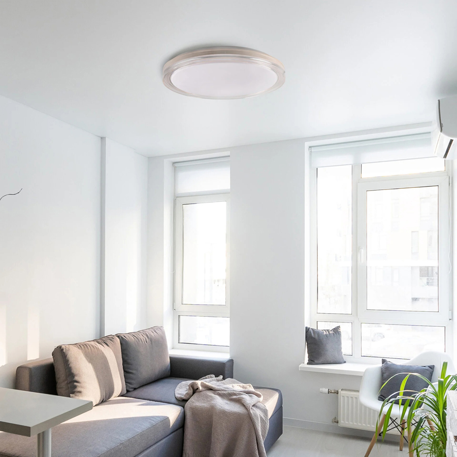 Bring sparkle and stylish lighting to your home with this stunning LED ceiling light that reflects light beautifully and adds a touch of luxury to your space. Its high-quality LED diodes provide excellent luminous efficiency with low energy consumption, and the frosted glass-toned diffuser distributes the light evenly without glare or shadows. The included remote control offers full control over your lighting. You can adjust the color temperature (3000K–4000K–6000K) and brightness to match your needs. The dimming function helps create just the right mood, while the 30-minute timer and memory function make operation especially easy and adaptable. This ceiling light is the perfect combination of modern technology, luxurious design, and versatile illumination – an ideal addition to your home.
