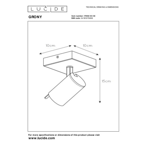 Grony can be used as both a wall and a ceiling spotlight. It looks like an ordinary black spotlight, but Grony has subtle colour touches that give him that bit of extra. The golden mount also serves a function, as you can use it to easily twist and turn the lightsource in the right direction. Grony is most at home in modern interiors, but can also get along great in a rustic style. This spotlight comes with an included lightsource equipped with the dim-to-warm principle, allowing you to regulate the brightness from 2200 to 3000k. You can also connect Grony to a dimmer.