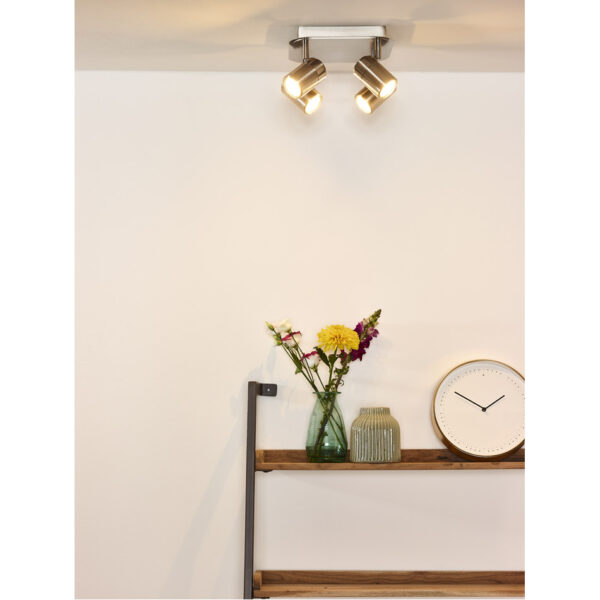 A square of light. This ceiling spotlight, called Lennert, has four light bulbs. One in each corner of the mounting plate. Its look is modern and robust. Each light bulb can be twisted and turned for optimal freedom. You can also easily connect it to an external dimmer. Thanks to its spacious layout, the modern spotlight is given a playful side. The ceiling spot is made of high-end metal. Dimmable light sources are included.