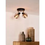 In your hallway, your living room, kitchen, dining room or the smallest room: Nila, this ceiling light with two light sources, deserves to be seen. Its special design immediately stands out. The black in the design softens and the brass cage around the glass lampshade intensifies. Perfectly balanced and ideal for every style. The light sources twist and turn, allowing you to direct the light where you want it. Combine it with an LED for extra warm, white light. Consider connecting it to a dimmer for setting the right mood. Thanks to its compact dimentions (21 by 16 centimetres) and the mounting plate, this light is easily mounted on the ceiling.