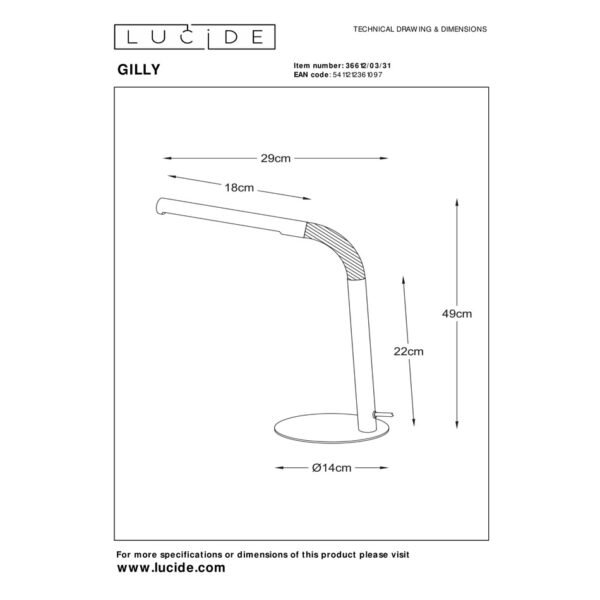 Hip, modern and energy efficient. This desk lamp called Gilly combines a modern design with modern technology. The Gilly has integrated LED lighting. The LEDs provide bright light and optimal work or study conditions. The metal arm is foldable to create the ideal light angle. You thus have a maximum height of 49 centimetres. The white version of the metal arm and fine base combine beautifully in sleek offices, studies or bedrooms.
