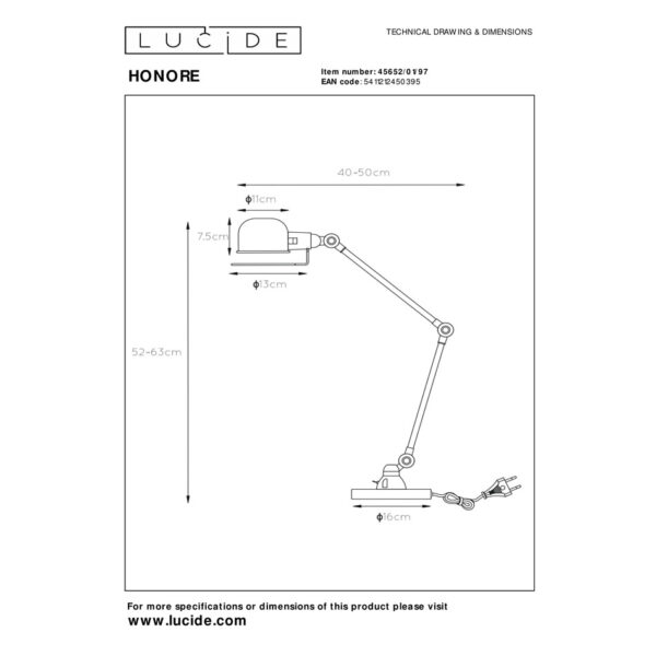 Whether it’s for work or relaxation: with the right desk lamp you stay focused. Certainly if that desk lamp is called Honore. Underneath its light rays, any job goes smoothly. In your home office, study room or at work. With its ergonomic features, it makes the difference in any environment. With the folding arm, you can always aim the desk lamp at the right angle. Honore’s cool and stylish look is a pleasant decorative piece. Certainly if you have to work through a night.