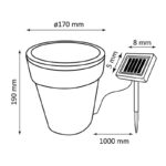 The Polux DONICZKA is a white solar-powered garden lamp designed to double as a decorative flowerpot. It measures 170 mm in diameter and 190 mm in height and is made from durable plastic material suitable for outdoor use. The lamp emits neutral white light with a color temperature of 4500K. It includes an integrated LED light with a 1-meter solar panel cable, charged by solar energy, and automatically turns on at dusk using a built-in dusk sensor. Featuring an IP44 rating, it is protected against rain and moisture, making it ideal for gardens, terraces, balconies, or patios to create atmospheric lighting while also serving a decorative function.