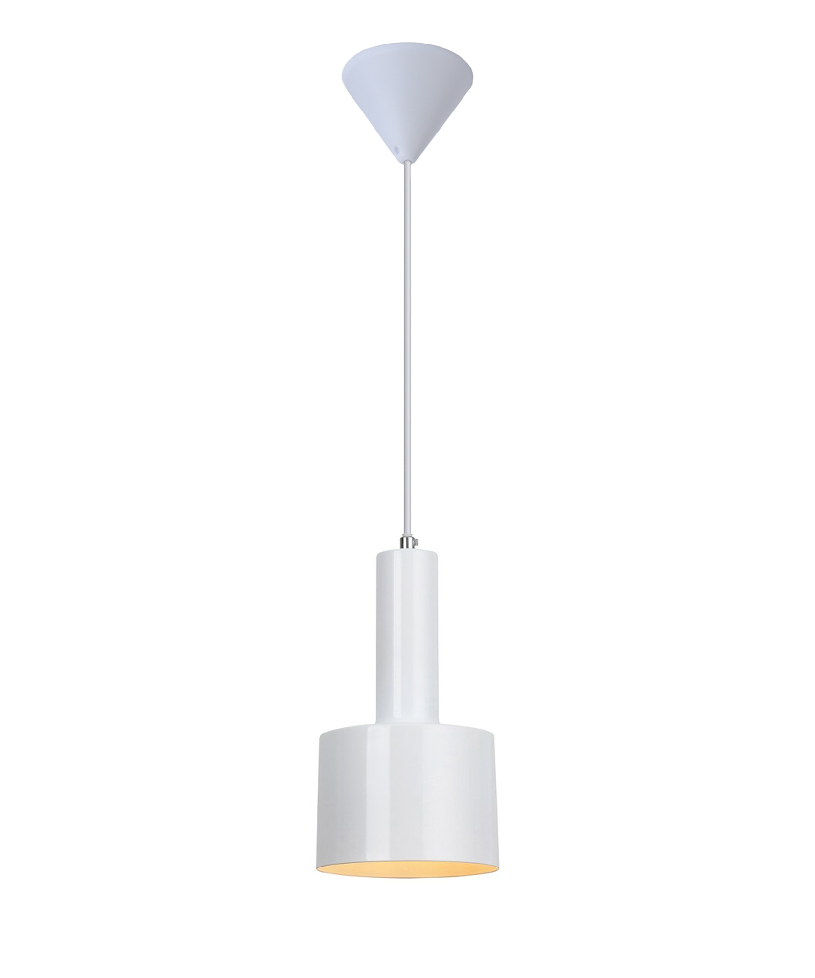 Elliot is an elegantly simple pendant lamp with a metallic white dome. The lamp has an E27 socket, which fits a maximum 40 W lamp. The diameter of the lamp is 14 cm. Suitable for many different interiors. The hook attachment and lamp plug enable easy and quick installation.