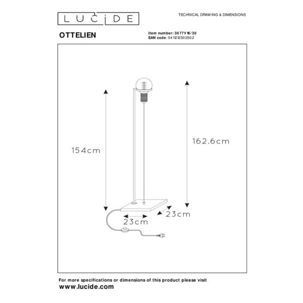 Floor light Ottelien shines in its simplicity. It is elegant and tasteful. Its base of marble combined with the right light source simply makes its design timeless. Thanks to its height of 162.8 centimetres, Ottelien is an eyecatcher in any interior, modern or rustic. Yet it is sober enough to not stand out too much. You can easily turn the floor light on and off by using the switch integrated into the cord. Combine ith with the right LED for an optimal effect of the warm, white light.