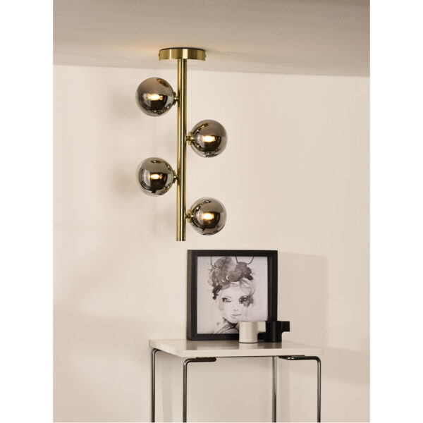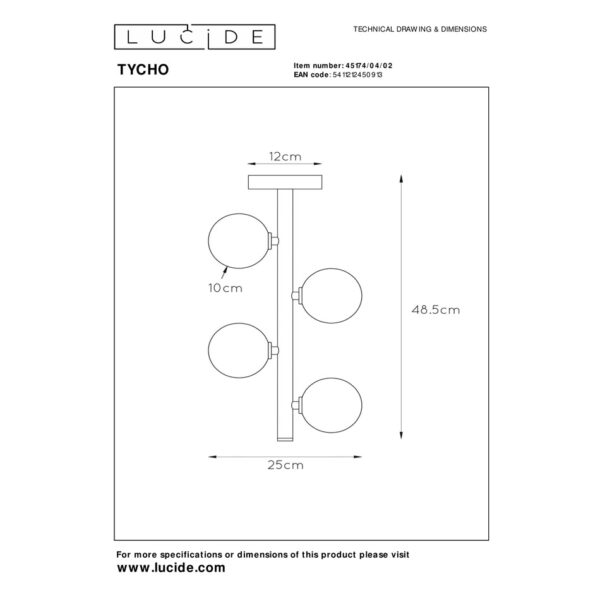 A handful of perfect spheres and a slender metal rod. This beautiful design does not need anything more to impress in your interior. This ceiling lamp named Tycho has four light points and fully expresses the beauty of perfect geometric shapes. The spheres are finished in non-transparent glass. That contributes to the mystery of Tycho. The diffuse light points are spread evenly over a length of 48 centimetres. You simply connect the ceiling lamp to a dimmer.