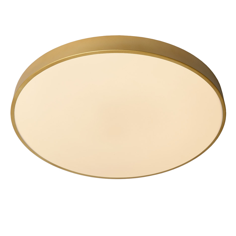 Grandeur and elegance, simplicity and timeless appearance. The ceiling lamp Unar combines these aspects with gusto. Due to its round, metal frame and a matt cover of the integrated LED light source, this ceiling lamp fits in almost any home. Unar has a diameter of 60 centimeters and is 5 centimeters high. A light statement above your dining table, at your coffee table, in the kitchen or above your desk. With the built-in dimmer, you can adjust the light intensity completely to your liking and enjoy the right amount of warm light at any time.
