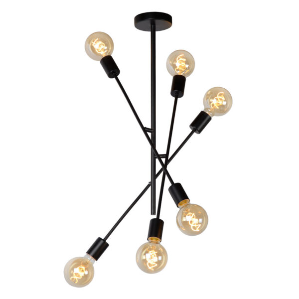 LESTER Flush ceilin.-Black-6xE27-40W-Metal