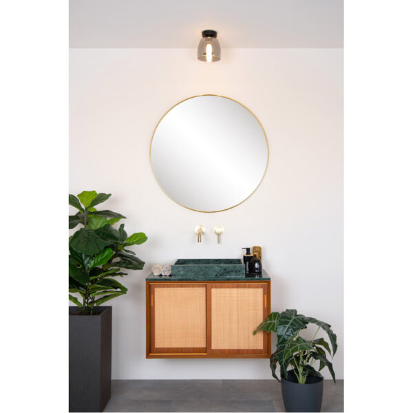 Light in your bathroom must be functional. But who says that light shouldn’t set the atmosphere? Or that a light fixture should not look stylish? This ceiling lamp with a retro look will remove any doubts. Tyler is the perfect combination of attractive fumé glass and brass. Moreover, you can easily connect Tyler to a dimmer. The ceiling lamp is designed for long-term and safe use in damp areas such as the bathroom. Not a fan of matte gold? Then go for the version with a black steel ceiling plate.
