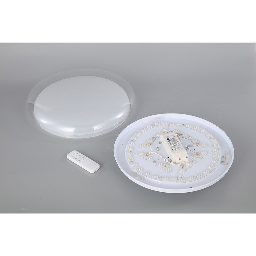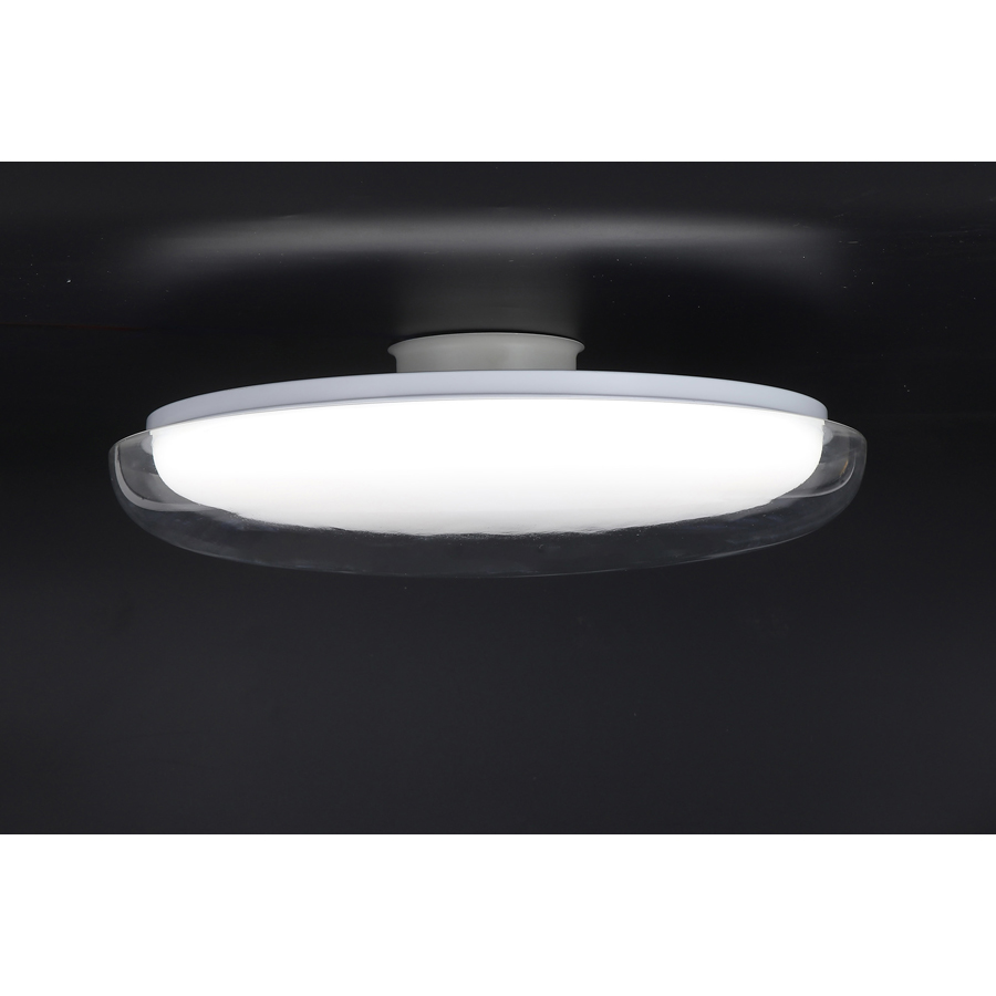 The FocusLight Gloss LED ceiling lamp (Ø 50 cm, clear/white) combines modern elegance and smart functionality — made of durable PMMA plastic and metal with a two-layer design, it has an inner white diffuser for soft, even lighting and an outer clear shell to lend a light, airy aesthetic. With 36 W LED (included), it delivers 4600 lumens and supports stepless dimming (via remote control), along with an adjustable color temperature range of 3000 K to 6500 K. Memory functionality retains your last brightness and color settings. Easy to install via hook mounting with included plug, it’s ideal for living rooms, bedrooms, or workspaces, offering both style and practical illumination