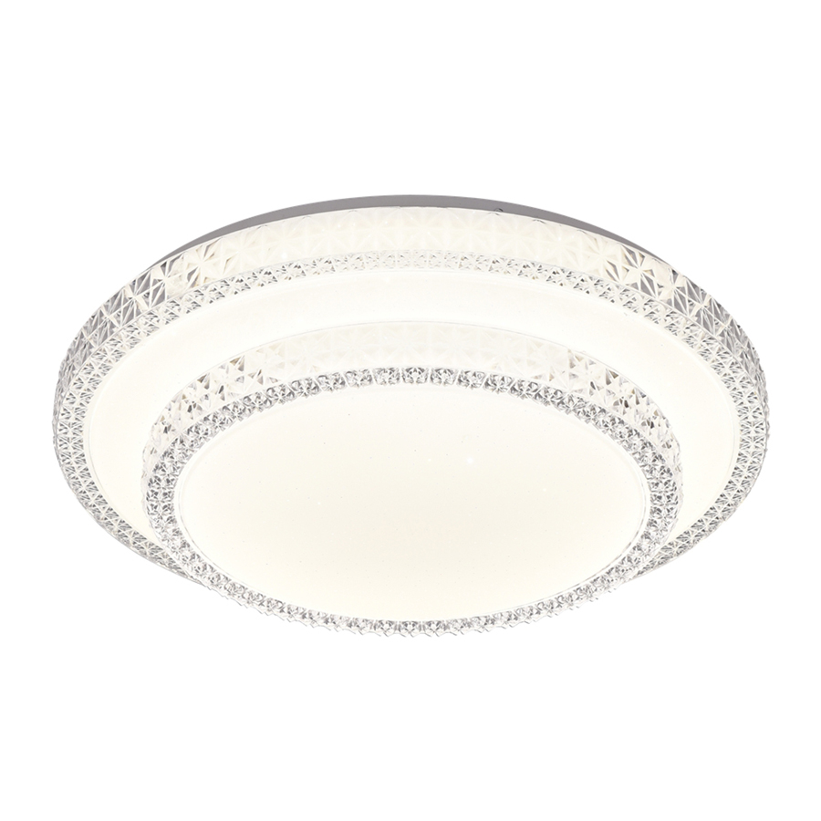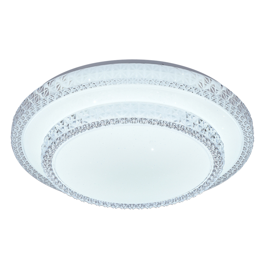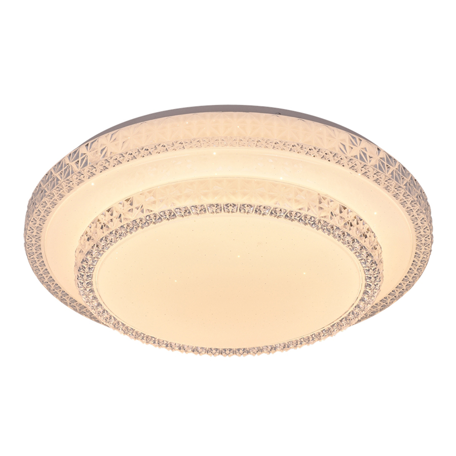 Laeplafoon Gross LED (RT-480931)” is a ceiling LED light made of PVC and metal, with a built-in LED module up to 96 W, producing around 7488 lumens and a color temperature range of 3000–6500 K. on24.ee It includes a remote control for adjusting brightness and color tone, making it both a powerful and user-friendly lighting solution — perfect for modern interiors seeking functional elegance.
