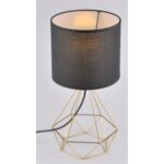 The HIRA table lamp is a universal floor lamp. HIRA is a lamp designed for interiors decorated in a modern style. The decorative base, the shape of which brings to mind a combination of geometric figures, emphasizes simplicity and minimalism. The black lampshade contrasts with the golden base and creates a coherent whole. This lamp is mainly used as table lighting in living rooms, bedrooms and living rooms. The extremely original and stylish HIRA Night Lamp is a hit lighting for fashionable loft arrangements or industrial rooms . The lampshade is made of gold-colored metal rods , creating a geometric shape reminiscent of a polished diamond. The lampshade is equipped with a socket with a popular E27 base , which allows you to use a traditional light bulb or an LED bulb in this lamp.