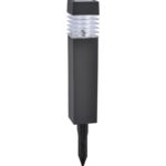 The Polux Martin is a modern, energy-efficient outdoor solar lamp with a minimalist square design in classic black color, ideal for gardens, pathways, terraces, or flower beds. It features an integrated LED light with neutral white color temperature at 4000K, powered by a solar panel that charges a built-in rechargeable battery during the day. The lamp automatically switches on at dusk thanks to a built-in dusk sensor. Made from high-quality weather-resistant plastic, it is built to withstand various weather conditions year-round. The lamp measures 66×66 mm in width and depth and is 395 mm high, and it includes a spike for easy installation directly into the ground without tools. This lamp provides subtle, atmospheric illumination while being environmentally friendly and maintenance-free.