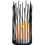 The NYBORG M LED lantern by Polux is a decorative battery-powered lantern with a height of 22 cm and a diameter of 10 cm, featuring a black metal body with some plastic elements. It is powered by two AA batteries (not included) and has an integrated LED light source emitting a warm white glow with a color temperature of 1600 K, producing a cozy and inviting atmosphere. The lantern has an IP44 rating, making it resistant to dust and splashes, suitable for both indoor and outdoor decorative use on terraces, balconies, or tables. It includes a mechanical ON/OFF switch, and its soft flickering light mimics the effect of dancing flames, enhancing ambiance and relaxation. This elegant lantern combines functional lighting with aesthetic appeal for home and garden environments.