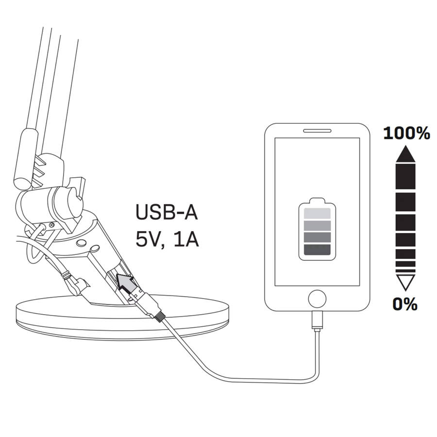 Optimum is a modern LED desk lamp that combines elegance and practicality. Its elegant design, made of plastic and metal, is ideal for both residential and office use. The lamp offers versatile adjustment options: you can adjust the height and angle of the light beam to your needs. In addition, Optimum has a USB charging point for external devices, intuitive touch control, seven-step dimming, a 60-minute timer and four different lighting programs. The color temperature of the light can be adjusted to three different levels (3000K, 4000K, 6000K), which allows for optimal lighting for different situations. The lamp has a built-in energy class F light source. Optimum is an excellent choice for modern interiors, combining design and functionality.