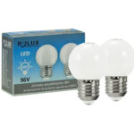 The Polux G45 LED bulbs for party garlands come in sets of 2 and operate at 36V with an E27 base. These bulbs produce a warm white light and have a power rating around 2W, emitting approximately 230 lumens per bulb. The bulbs have a lifespan of about 25,000 hours, making them energy efficient and durable for repeated use in decorative string lights. The compact 45mm diameter design fits standard E27 sockets, ideal for creating festive and cozy atmospheres in indoor or outdoor party settings. The bulbs are non-dimmable and designed specifically for garland use.