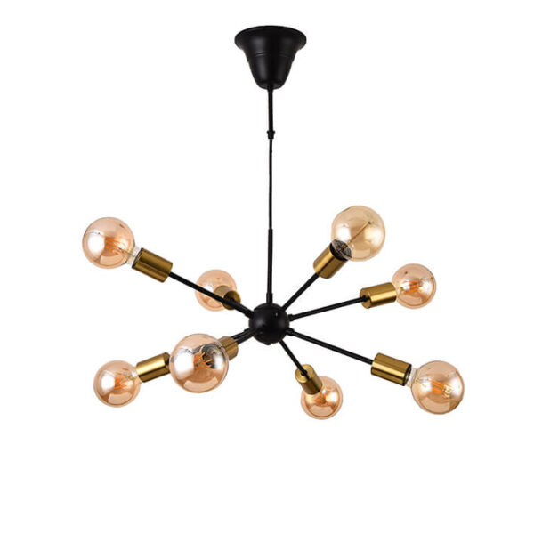 Add a dramatic touch to your interior with the FocusLight MADELYN pendant lamp. Its 56 cm matte black frame with gold accents creates a striking modern silhouette, while eight E27 sockets (bulbs not included) provide warm, multi-directional lighting. Designed for ceilings up to 150 cm high, it’s easy to install with a hook and connector, operates on 230 V, and is IP20-rated for indoor use. Perfect above a dining table, kitchen island, or in a statement hallway, MADELYN is more than lighting — it’s a centrepiece.