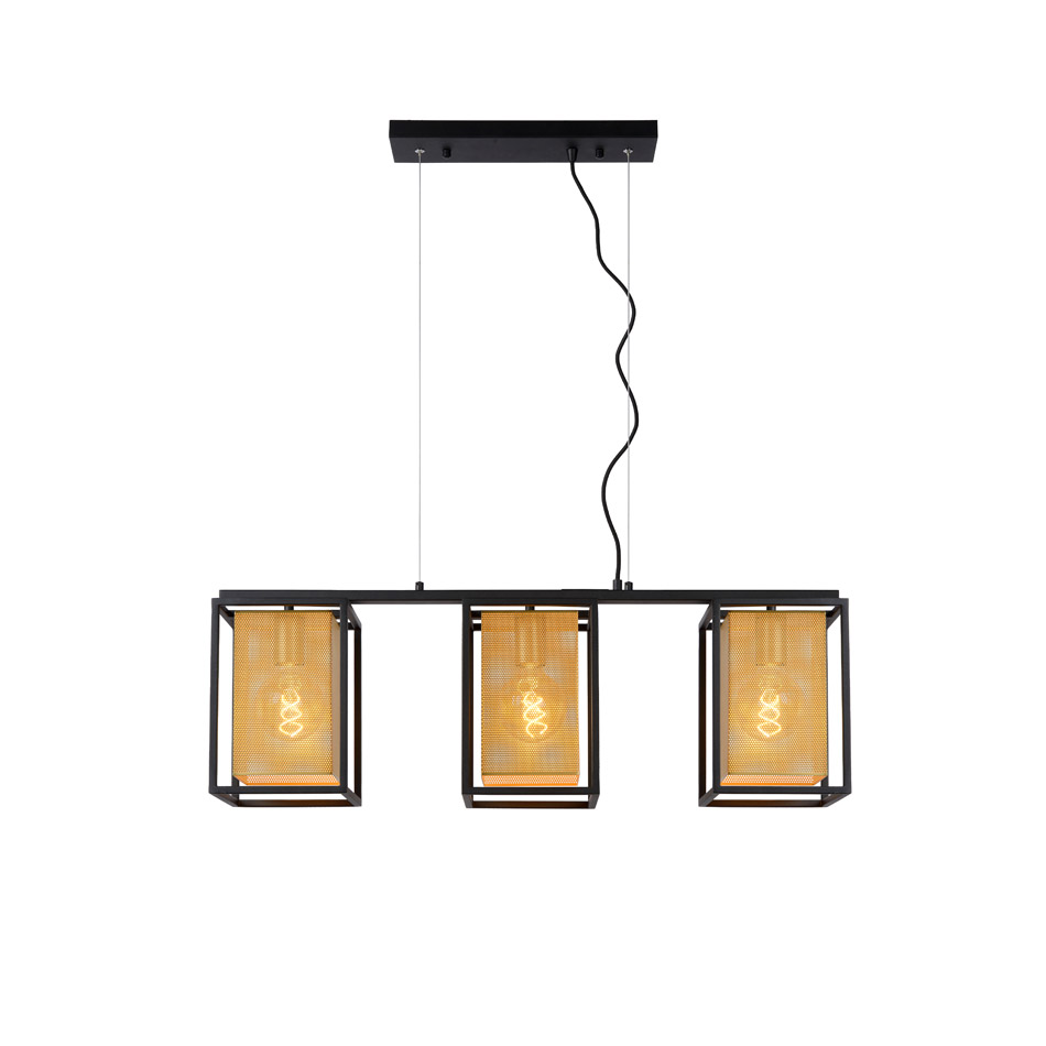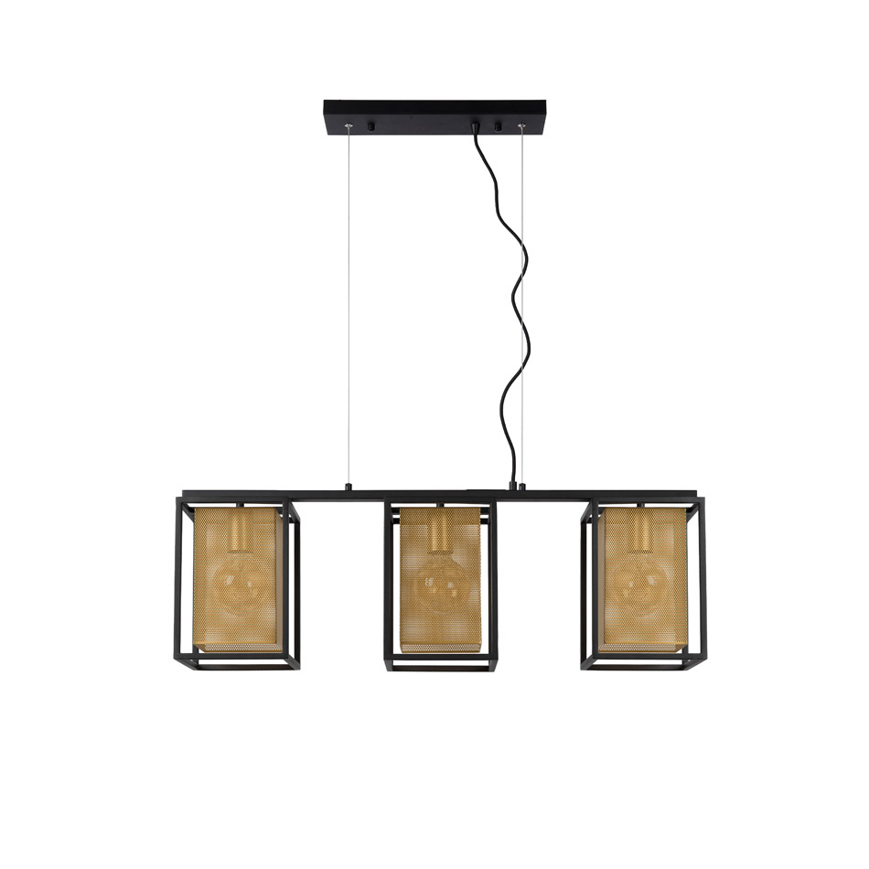 The surprising marriage between metalwork, brass mesh and expressive filament lamps results in Sansa: a pendant lamp with a modern look and tonnes of character. A platform from which three light bulbs are suspended descends from the compact mounting plate. The bulbs are each surrounded by a slim metal frame with a brass grid inside. You can easily set the height of Sansa yourself for the installation. You can choose between heights of 50 to 158.5 centimetres. Enjoy the cosy, diffuse light distribution by connecting your new ceiling lamp to a dimmer.