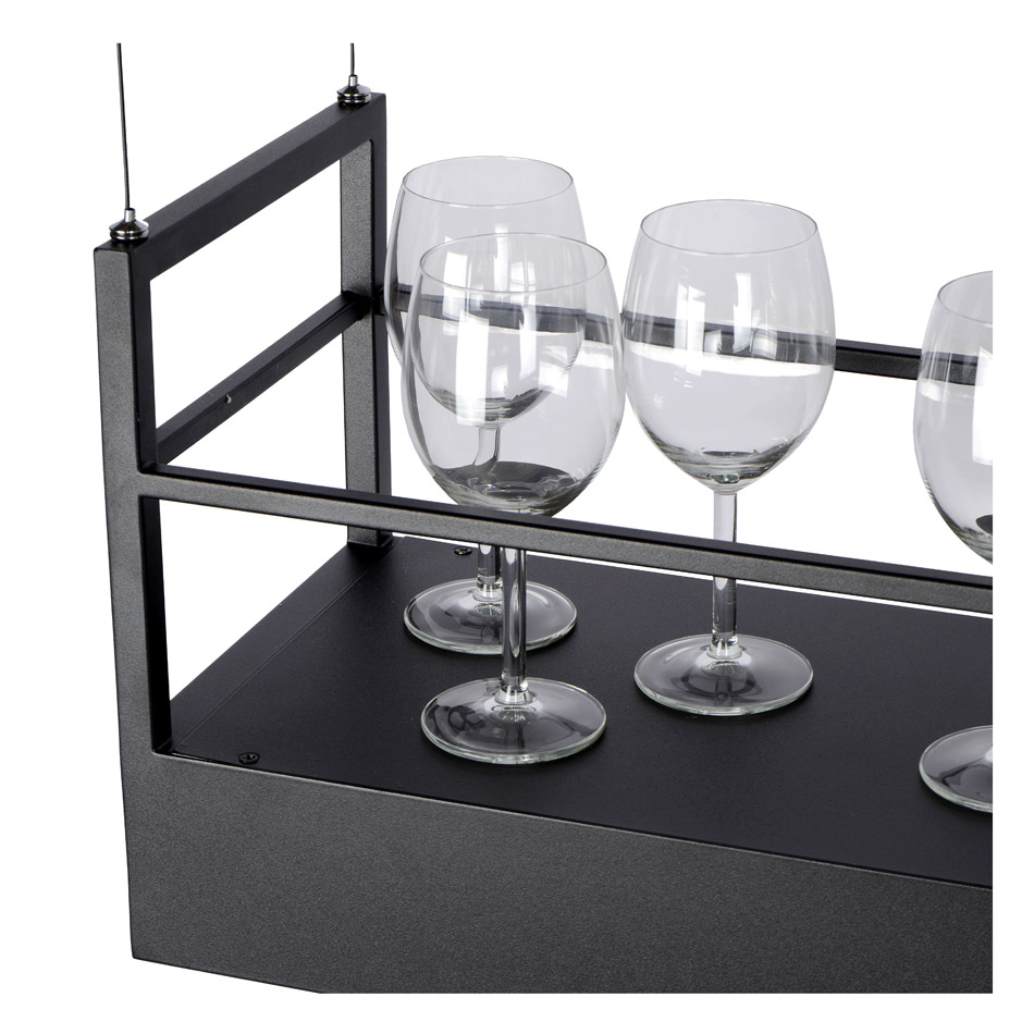 Handy lighting and practical storage space in one design? Miravelle makes it possible for you. This particularly functional hanging lamp fits into any kitchen style. It is made of high-quality metal and has six spots with space, with space above for glasses, pepper and salt mills or some nice plants and herbs. Don’t panic, you will always be able to access your things, because Miravelle can easily be adjusted in height. This varies from 60 to 160 centimetres. An intimate tête-à-tête around the kitchen island? Connect this chandelier to a dimmer. Atmosphere guaranteed.