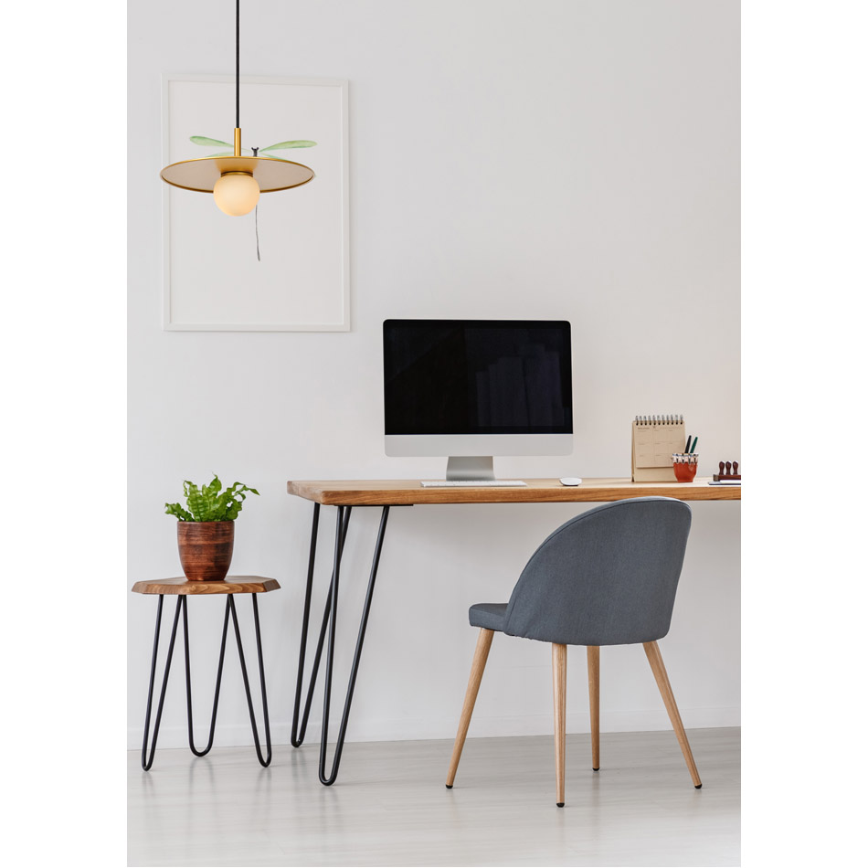 Topher is a retro kid that stands out in its simplicity. It adds a playful touch to your modern or Scandinavian interior. This ceiling light is adjustable in height from 50 to 138 centimetres. The light source is enveloped by a stylish sphere made of high-end opal glass. The flat, round lampshade with a diameter of 30 centimetres and made of high-end steel seems to balance on top of the sphere of light. This gives the chandelier that extra luxurious flair. Topher is easily connected to a dimmer.