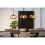 Lucas brings light, literally. Because that what its name means and is exactly what this ceiling light does. Three times, even. Three LED light sources in a golden cage hang from a plate of 100 centimetres to 8 centimetres. The ensemble is made of high-end metal. Lucas is adjustable in height from 50 centimetres to 145 centimetres and is easily connected to a dimmer. Its handsome looks are perfectly at home over the kitchen table, dining table or kitchen island.