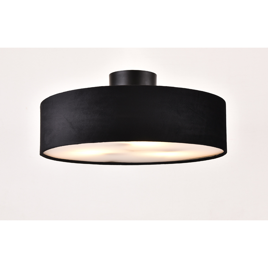 SANDRA ceiling lamp (45cm) is a classically shaped lamp made of black fabric, with a white light source cover at the bottom. This way the light filters through beautifully and evenly. The ceiling lamp has a 3xE27 base for which you can choose the light sources according to your taste.