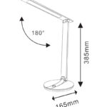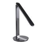 The Polux Serra black LED desk lamp is a modern dimmable desk lamp featuring an 8W integrated LED light with adjustable color temperature settings of 3000K (warm), 4000K (neutral), and 6500K (cool). It has a sleek black plastic body with a white lampshade, measuring 165 mm in length, 350 mm in width, and 385 mm in height. The lamp offers a 3-step touch dimming function to control brightness levels and can adjust the direction of the light for personalized illumination. It provides a luminous flux of 790 lumens with a color rendering index (CRI) of 80 or higher, suitable for home or office use. The product operates on 230V, has a lifespan of approximately 15,000 hours, and includes a 1.5-meter power cable. Ideal for reading or task lighting, it combines energy efficiency with versatile lighting control.