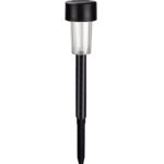 The Stik Black 4.5 cm solar-powered lamp is an outdoor garden light designed with IP44 waterproof protection. It features a 6000K color temperature for bright white light and is powered by a solar panel that charges during sunlight. The lamp is compact, easy to install by sticking it into the ground, and suitable for outdoor use in gardens, pathways, or patios. Its solar technology allows for energy-efficient operation without electrical wiring, providing convenient and eco-friendly illumination with reliable weather resistance.