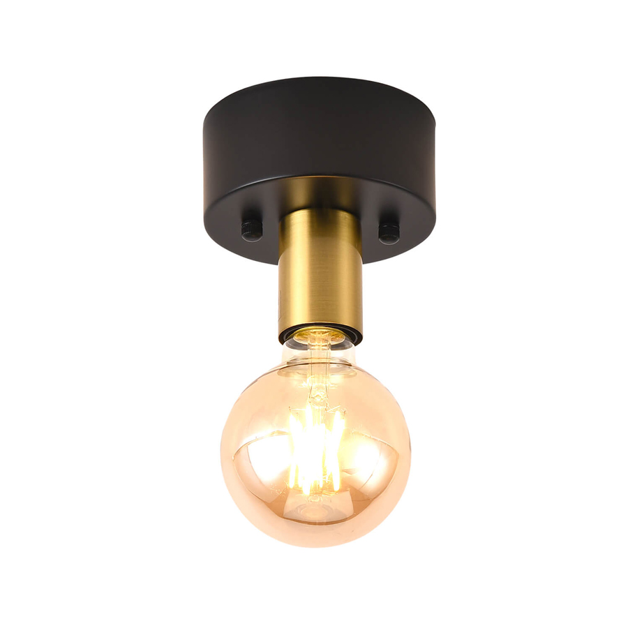The FocusLight SUZY ceiling light (Ø 12 cm) in black with brass accents is a compact, stylish fixture perfect for adding character to small spaces. It supports a single E27 bulb up to 40 W (not included), allowing you to choose the lighting warmth and style that suits your interior. Made from metal, it features hook mounting with a terminal block, operates at standard 230 V, and has an IP20 rating. With its minimalist, elegant design, this fixture is ideal for hallways, kitchens, or as accent lighting where a sleek black-and-brass look is desired.