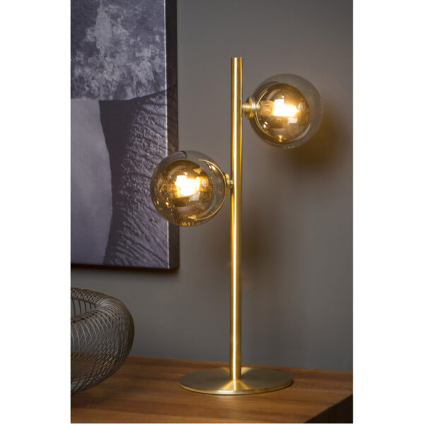 Table lamp Tycho owes its retro look among other things to the choice of high-quality materials: high-quality steel and real glass give shape to this luxurious lamp. The two light points are attached at different heights to the sleek steel base. The perfect spheres are positioned at 180° relative to each other. Despite the difference in height, Tycho radiates a natural balance. From the core of the glass spheres, the lamps spread their pleasant glow in your contemporary or rural interior.