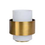 The ideal mood setter for your chest of drawers, bedside table or desk? Firmin fits in everywhere. As long as a touch of retro is welcome. This stylish table lamp spreads a warm glow wherever you place it. You can easily switch Firmin on and off with a switch on the cord. The lamp combines an opal glass cylinder with a brass belt. With its subtle dimensions of 20 centimetres in length and 23.5 centimetres in height, Firmin is very flexible in use.