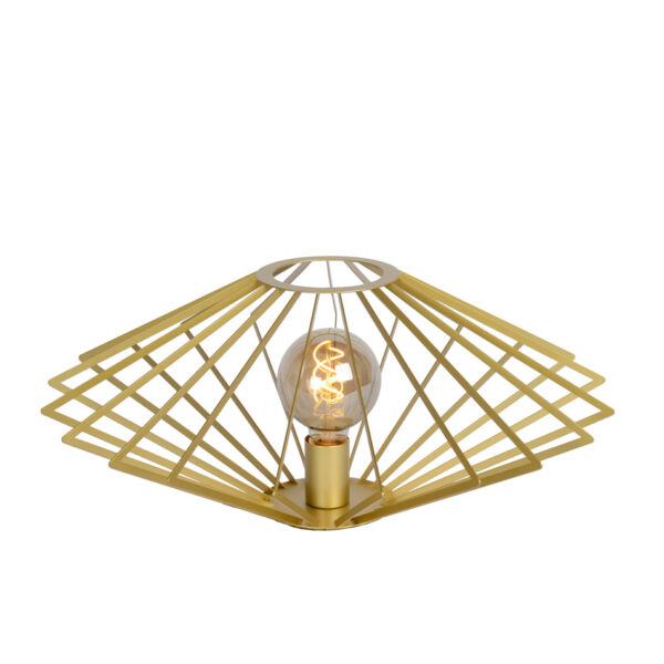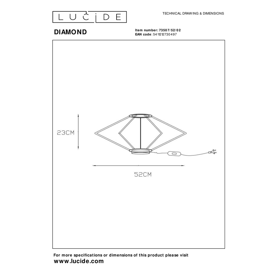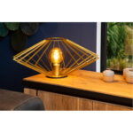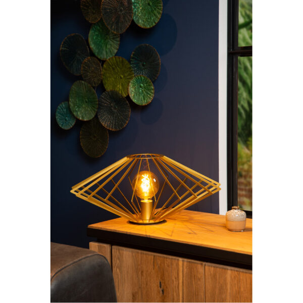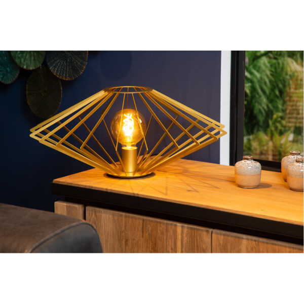 Do you have space to fill on your chest of drawers, and are you looking for an original table lamp? Diamond fills that space with ease. This table lamp is a striking character with its 52-centimetre diameter and 23-centimetre height. The angular, brass lamp is open-worked so that the filament light bulb comes into its own. You can operate Diamond in an instant with the switch on the cord.