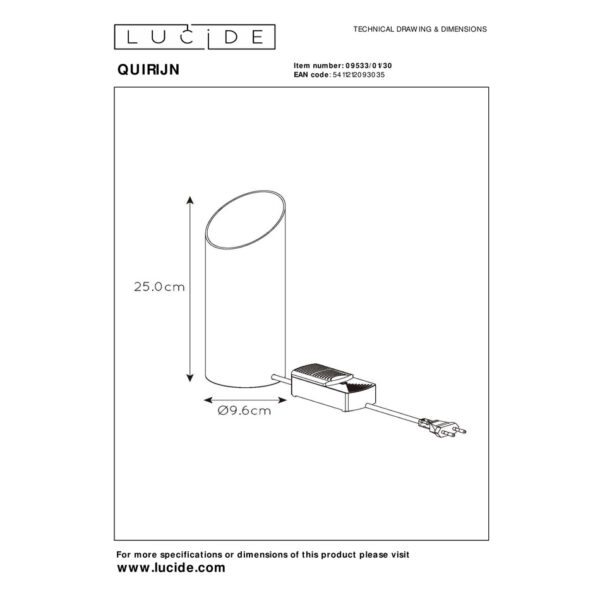 When you bring Quirijn into your home, you have an elegant friend in your interior. This table lamp combines high-quality metal with an original cylinder shape from which the warm glow of light radiates. Quirijn extends the refinement to its dimensions, with a height of 25 centimetres and a diameter of 9.6 centimetres. This makes it a cosy and modern addition to your living room, bedroom or dining area. Combine with the appropriate LED bulb for optimal results. You can easily switch this table lamp on and off via the control in the cord.