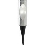 The Togo-35 RGB inox solar lamp is a 35 cm tall outdoor light with dimensions 60 x 60 x 350 mm. It features LED SMD 5730 technology combining white light at 6500 K (cold) and RGB multicolor options, powered by a 1.2 V solar battery. Made from metal with an inox finish, it has an IP44 rating for protection against dust and water splashes and belongs to energy class A+. This lamp provides colorful, energy-efficient solar lighting suitable for gardens and pathways with a durable, modern design.