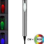 he Togo-70 RGB inox solar lamp by Polux is a 70 cm tall outdoor lamp with dimensions 60 x 60 x 700 mm. It features LED SMD 5730 technology with combined white light at 6500 K (cold) and RGB multicolor options, powered by a 1.2 V solar battery. The lamp is made of metal with an inox finish, boasts an IP44 rating for protection against dust and water splashes, and belongs to energy class A+. This modern solar lamp offers colorful, energy-efficient lighting, ideal for garden and pathway decoration with a durable design and easy solar operation.