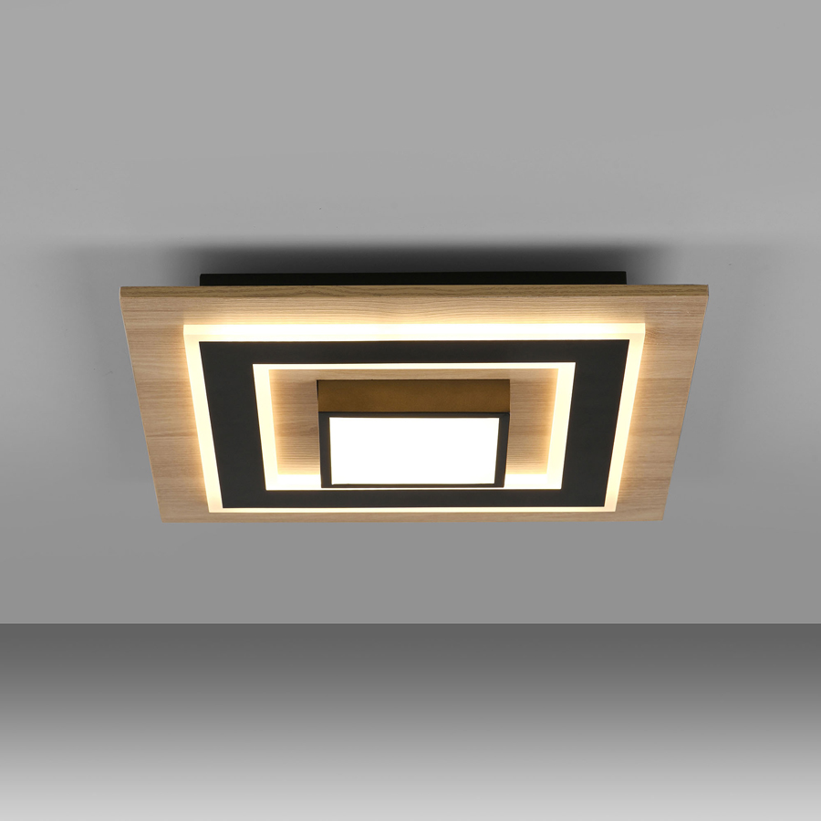 The TOLA ceiling light combines natural elegance with modern design. Its stylish wooden detail and matte black components create a striking contrast that adds warmth and sophistication to any interior. Fitted with an integrated LED panel, it emits a pleasant warm white light (3000K). The light sources can be switched on either together or separately at the push of a wall switch, allowing the lighting to adapt to different moods and needs with ease. TOLA provides smooth, gentle illumination that creates a welcoming atmosphere—ideal for living rooms, bedrooms, or hallways. This fixture transforms your home into a cozy, harmonious space where natural beauty meets modern style. Make your home even more inviting with the TOLA ceiling light.