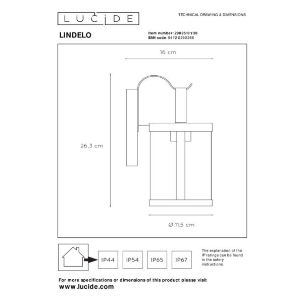 LINDELO Wall light Outd.-Black-1xE27-40W-IP23