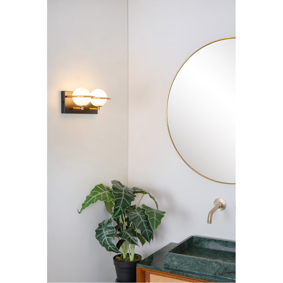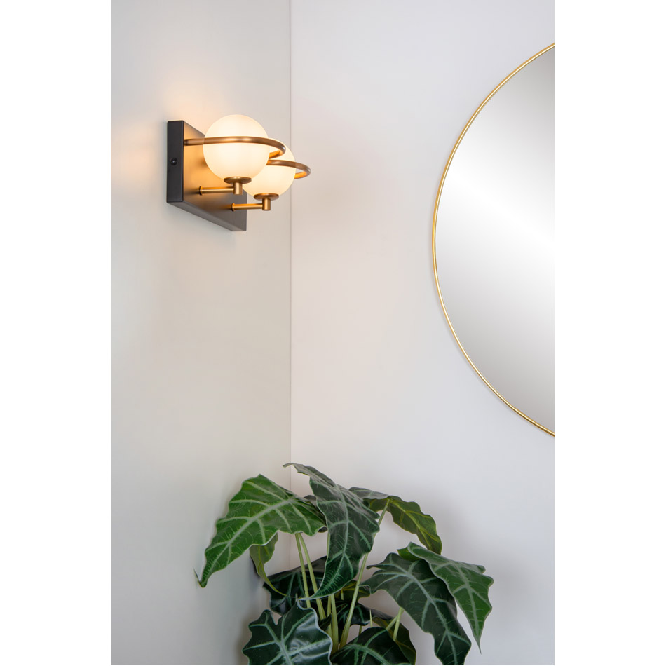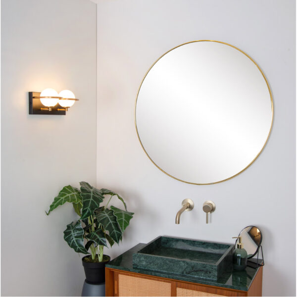Also part of the Isobel series is this wall light. Perfect for starting your day in style. This wall light is specially designed for safe use in moist environment. Perfect for the bathroom, although Isobel also looks great in other rooms of your home. This wall light consists of two light sources, each surrounded by a sphere of high-end glass and protected by a metal ring. Isobel intimately latches onto the wall with a rectangle-shaped aluminium plate of 30 centimetres wide and 12 centimetres high. Create the perfect mood by connecting Isobel to a dimmer.